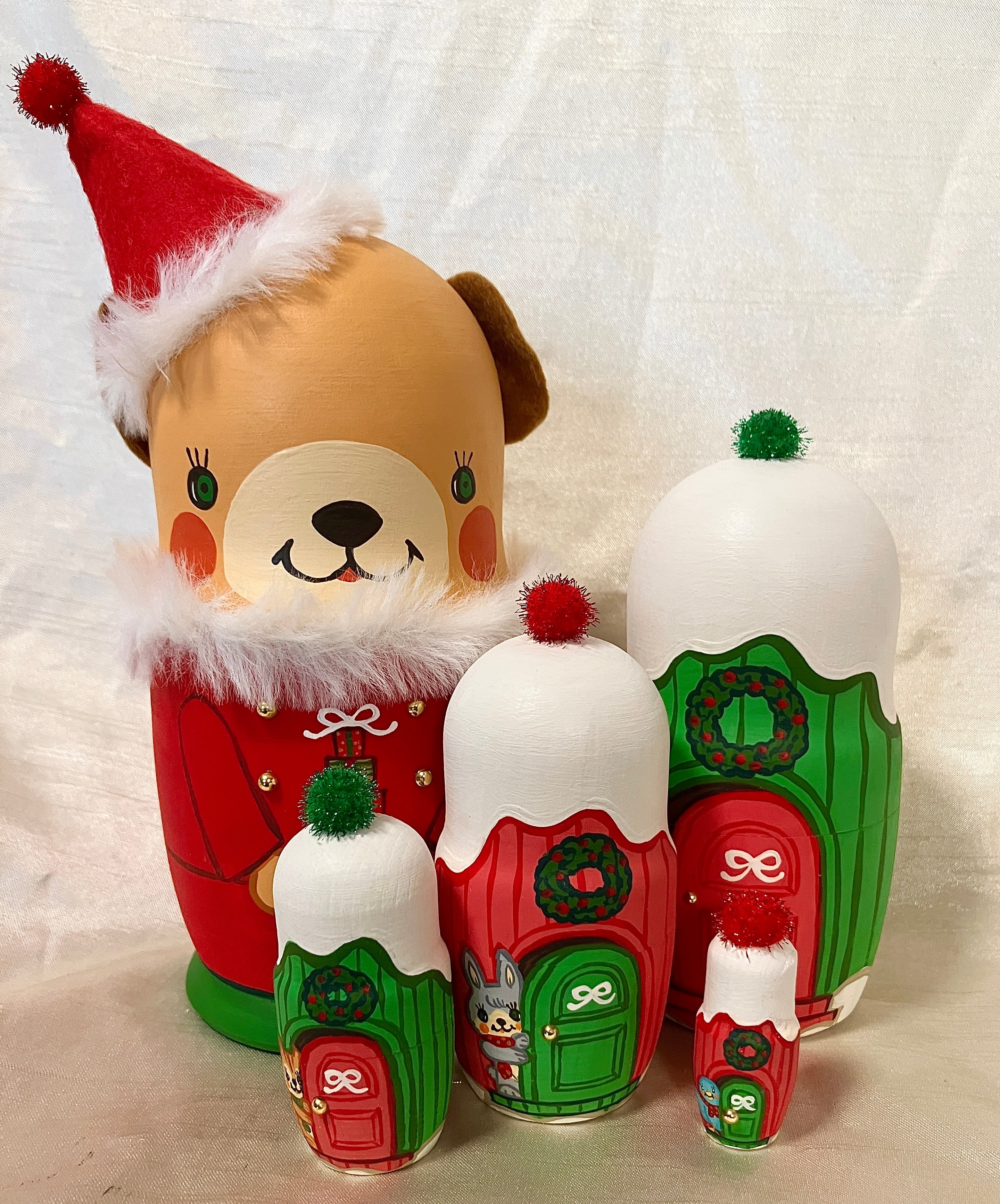 クマさんサンタと小さな森の動物たちのマトリョーシカ♪