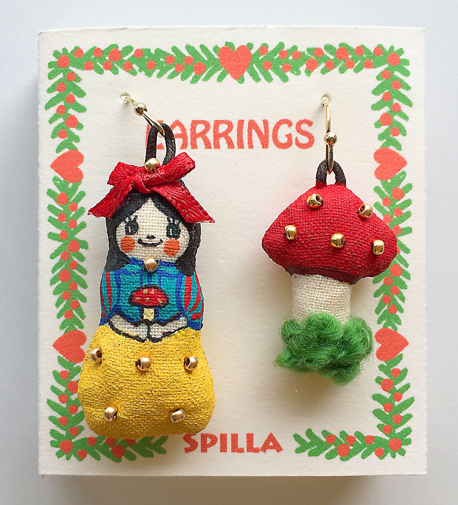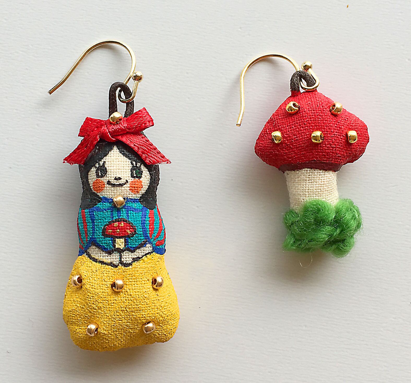 サイズ:白雪姫:約4cm×約2cm、キノコ:約2cm×約2.8cm