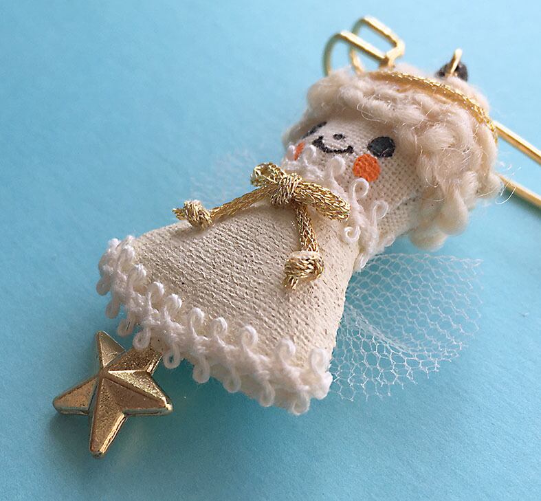 素 材:綿布、ポリエステル綿、アクリル塗料、ゴールドメッキ、サテンリボン