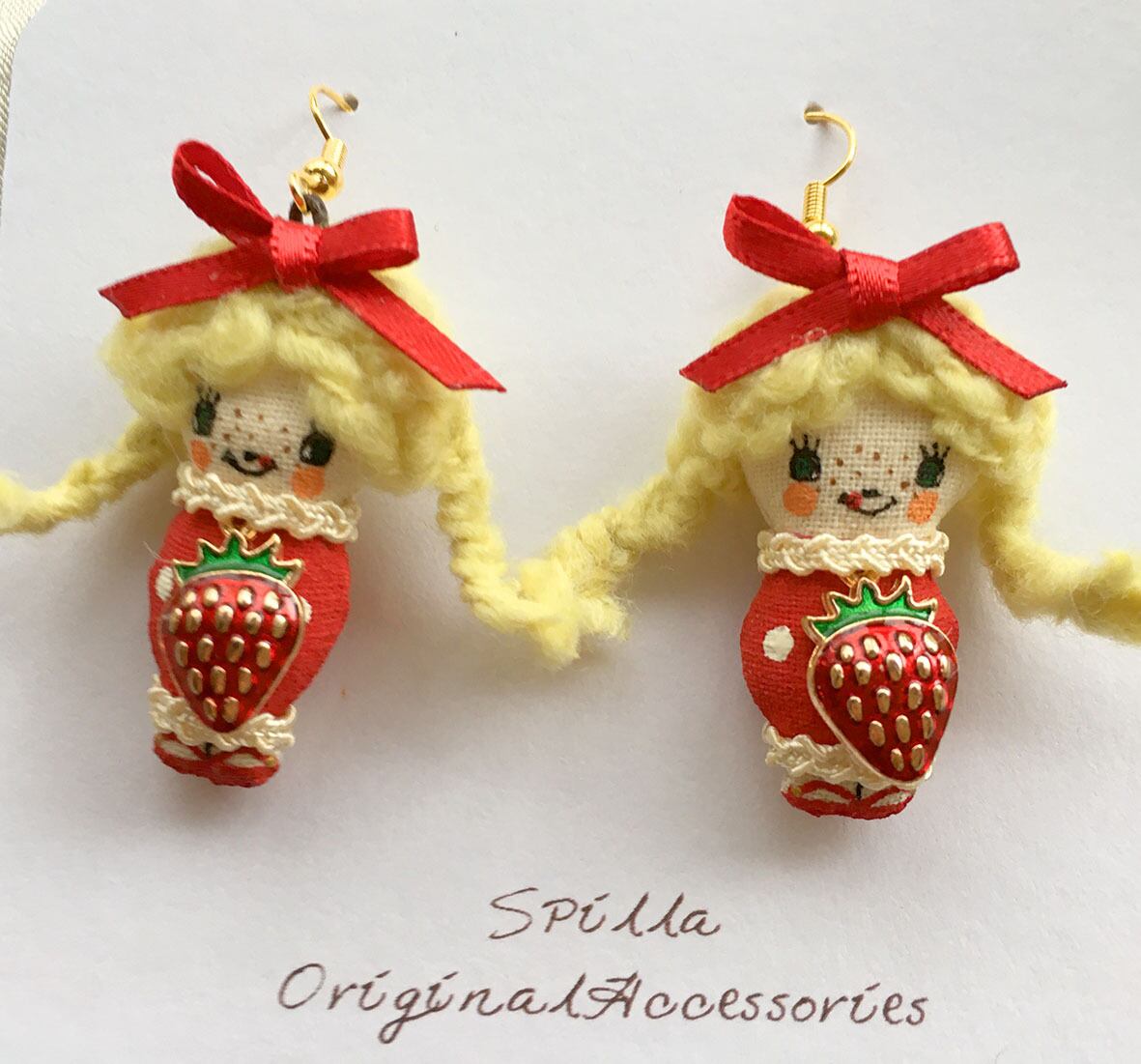 三つ編みリボンの可愛いイチゴちゃんのピアス。