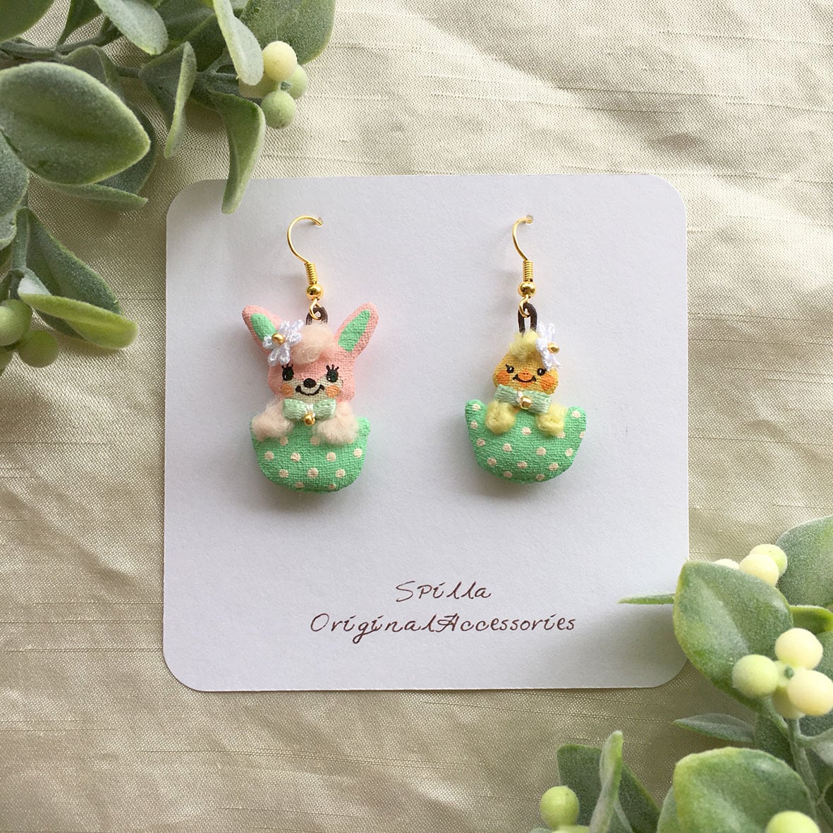 卵から飛び出した!ウサギとヒヨコのピアス。
